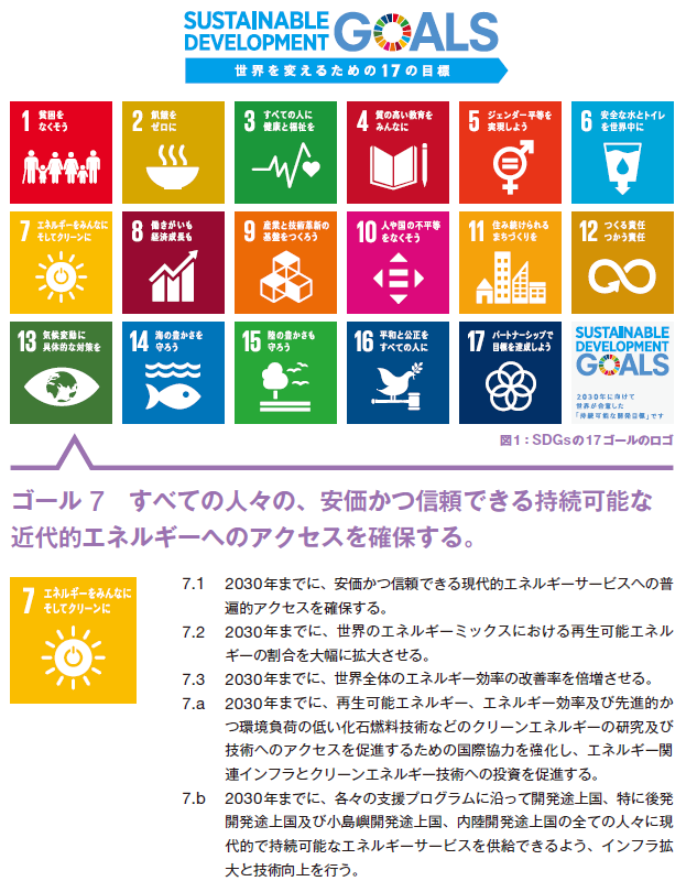 2030アジェンダでは、世界を変えるために5Psという基本姿勢を掲げ、それらをもとに世界を変えるための具体的な17のゴールを設定しています。これがSDGsの17のゴールといわれるものです。また、達成すべき課題として、169の目標(ターゲット)を示しています。例えば、GSCと関連が深いゴール7のターゲットを下記に示します。