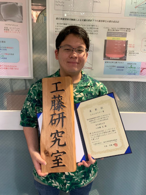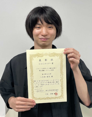 この度は名誉あるGSC ポスター賞を頂き大変嬉しく思います。今回の受賞により、今まで以上に日々の研究に自信を持つことができました。ご指導頂いた守谷誠先生、一緒に議論をして頂いた研究室のメンバーに感謝申し上げます。今後も持続可能な社会の実現に向けて研究活動に邁進していきます。 |